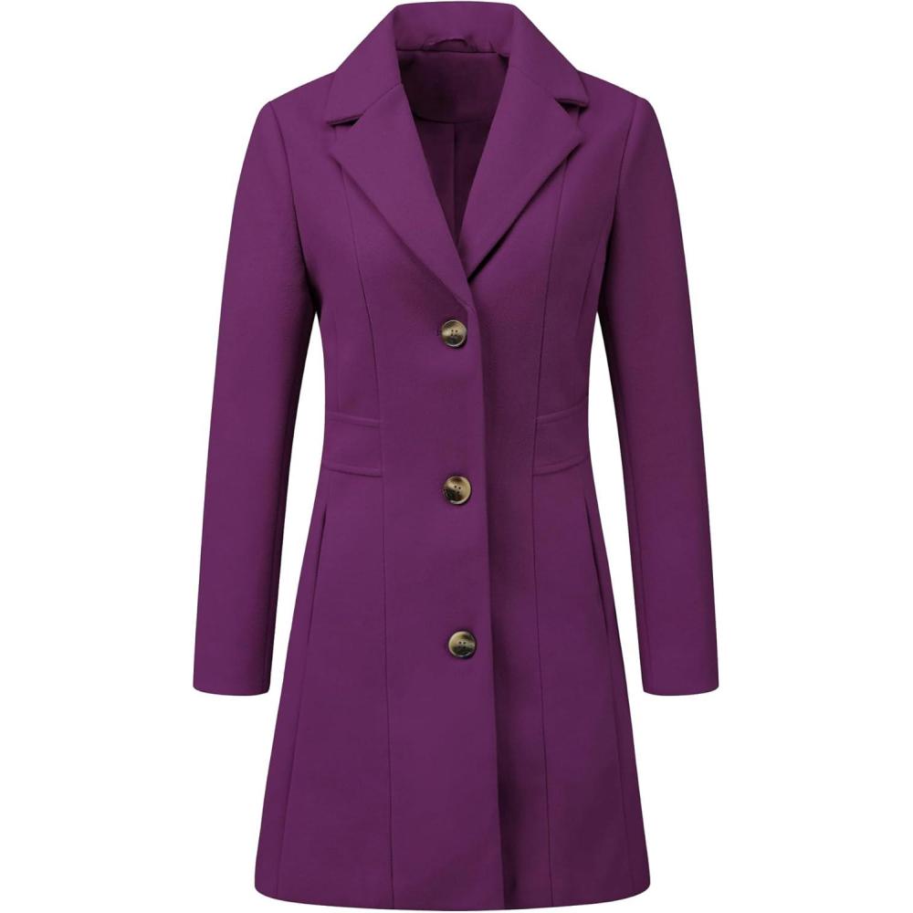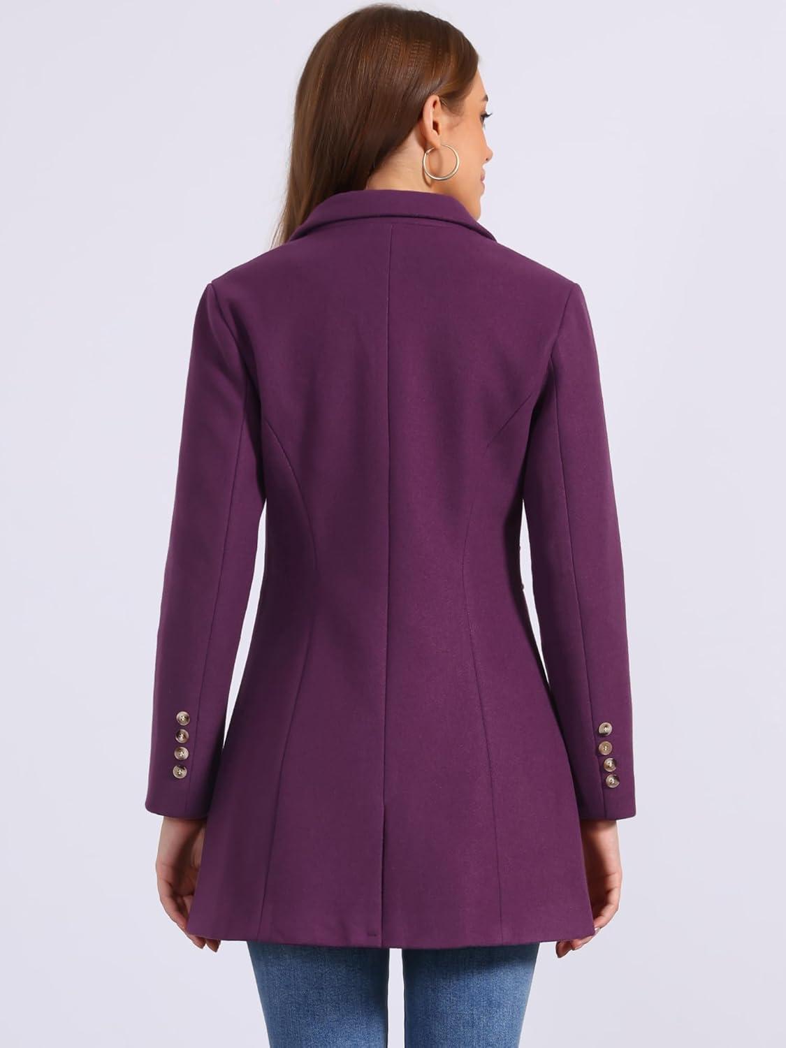 Allegra K Women’s Winter Pea Coat 2025 Fall Single Breasted Long Outerwear Trench Coats(Dark Purple)