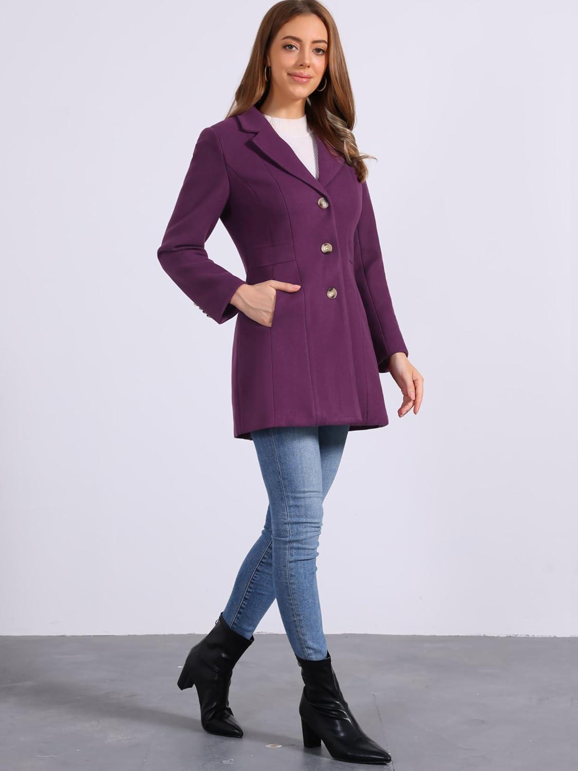 Allegra K Women's Winter Pea Coat 2025 Fall Single Breasted Long Outerwear Trench Coats(Dark Purple)