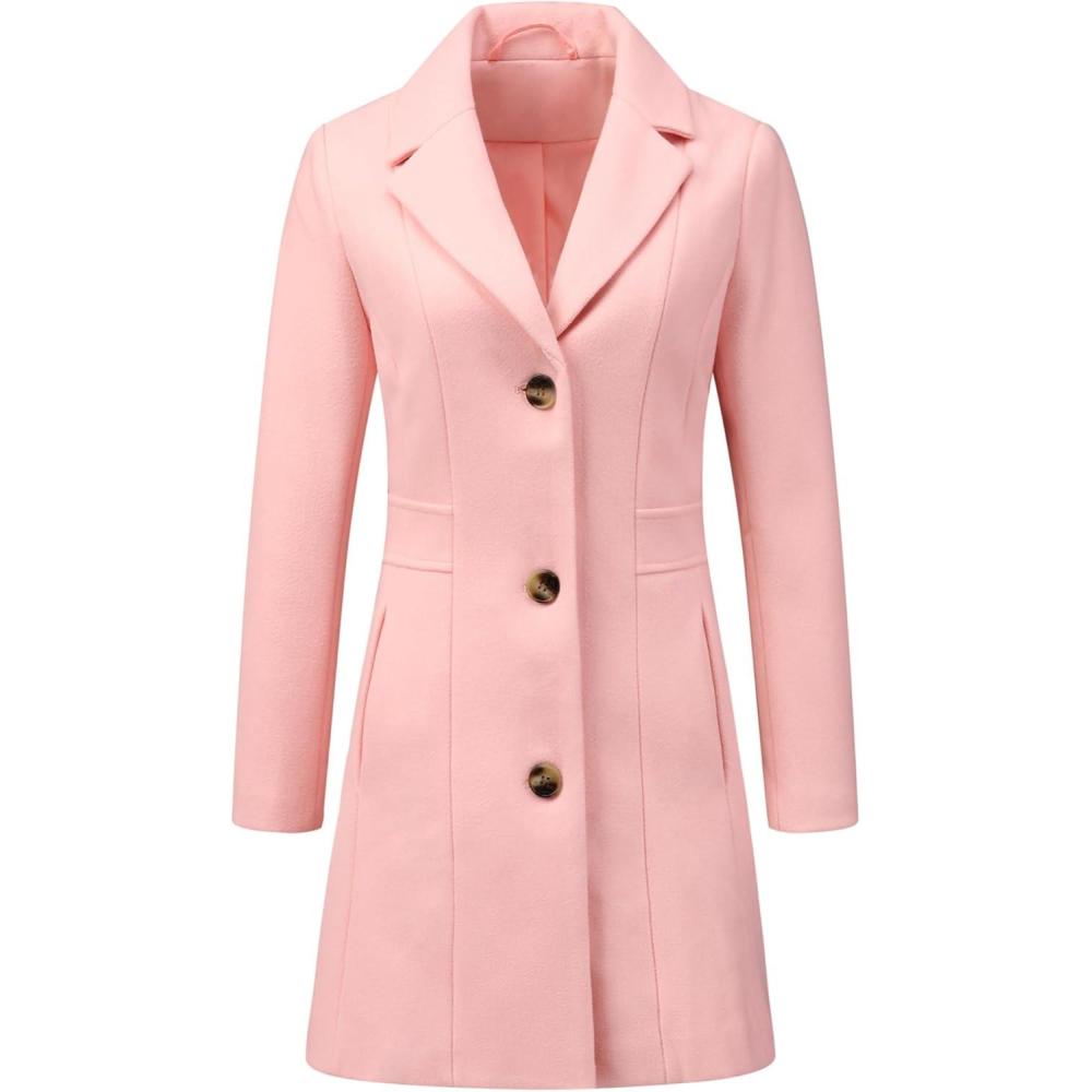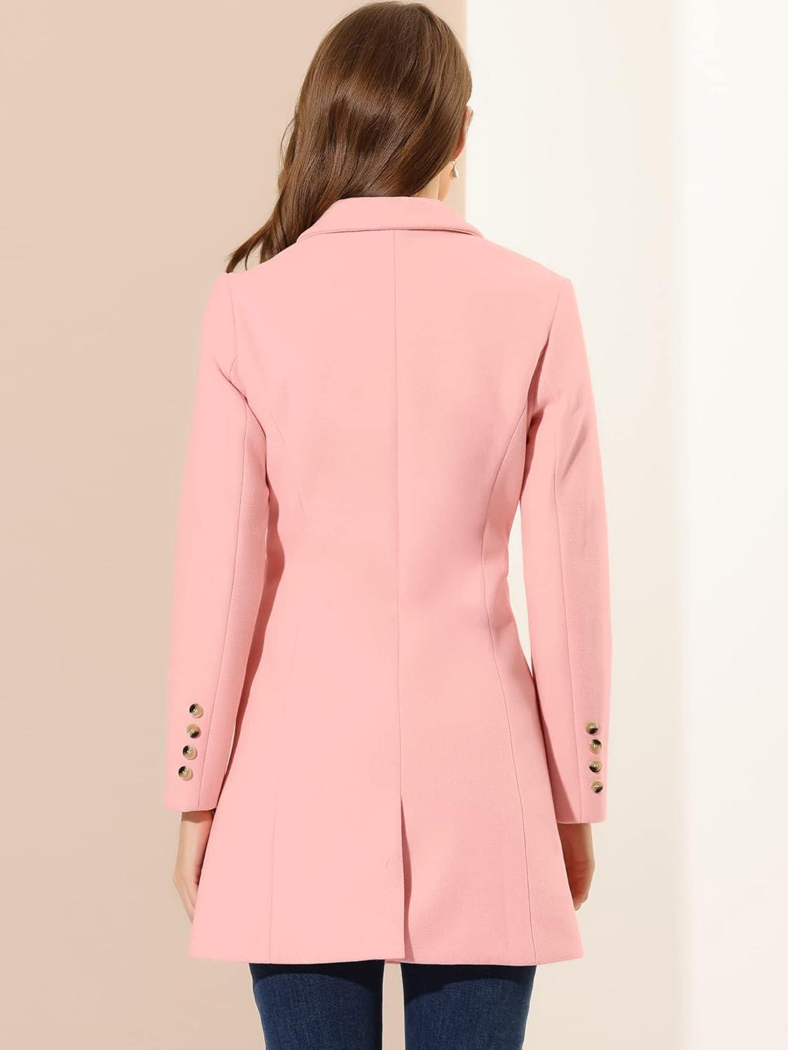 Allegra K Women's Winter Pea Coat 2025 Fall Single Breasted Long Outerwear Trench Coats(Pink)