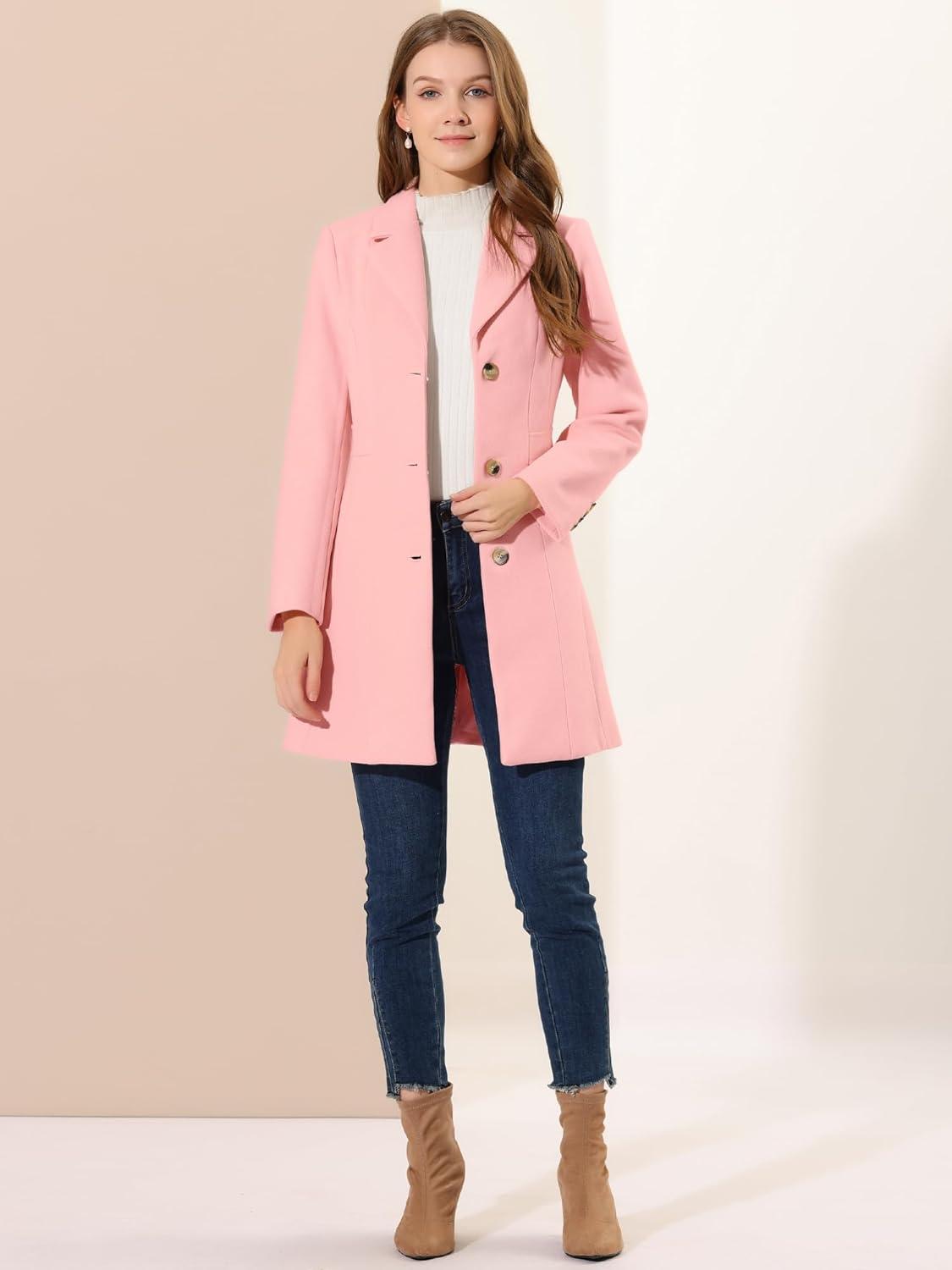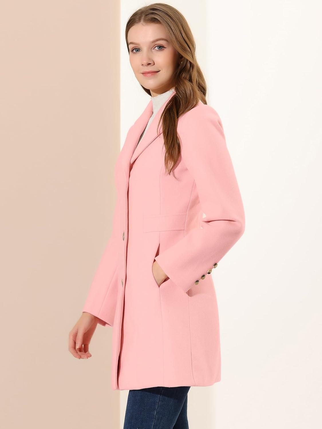 Allegra K Women’s Winter Pea Coat 2025 Fall Single Breasted Long Outerwear Trench Coats(Pink)