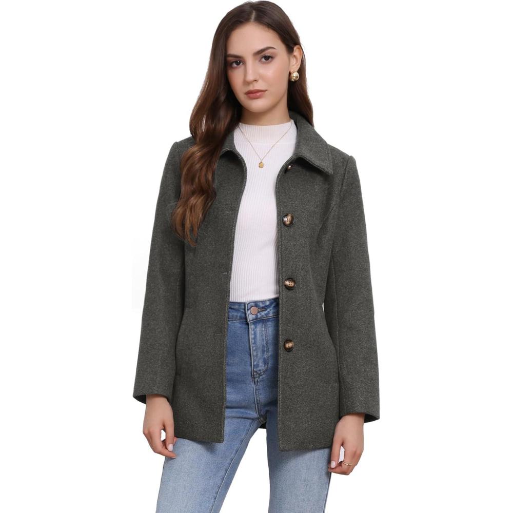Allegra K Womens Work Office Winter Overcoat Single Breasted Point Collar Pea Coat(Dark Gray)