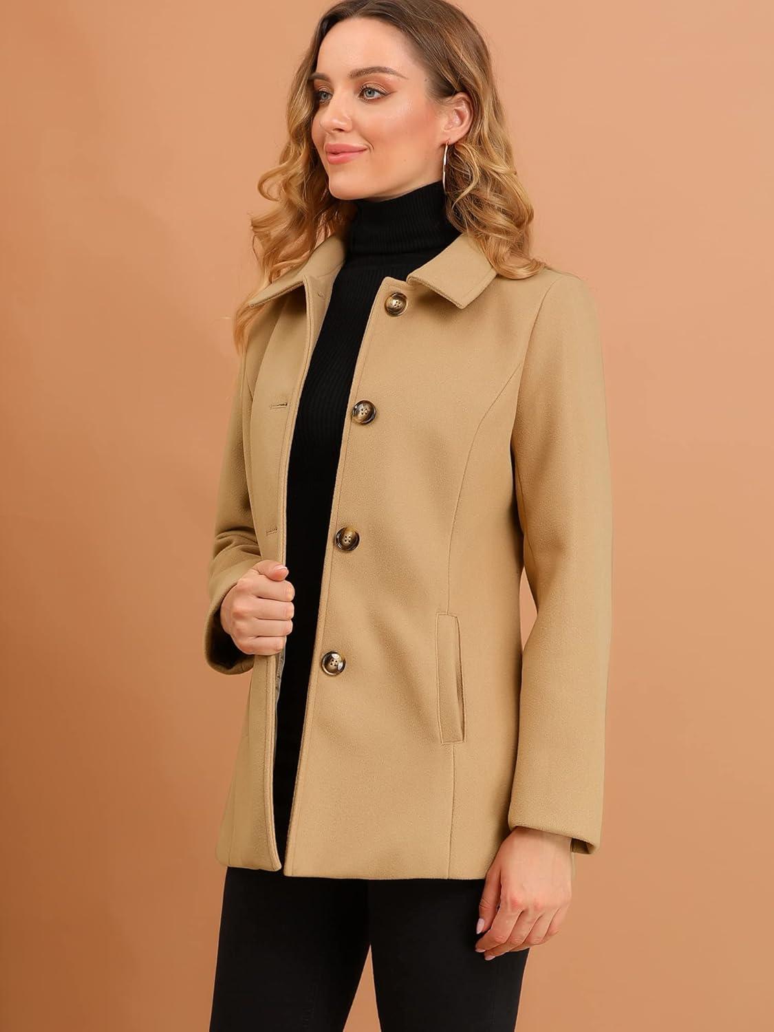 Allegra K Women’s Work Office Winter Overcoat Single Breasted Point Collar Pea Coat(Khaki)