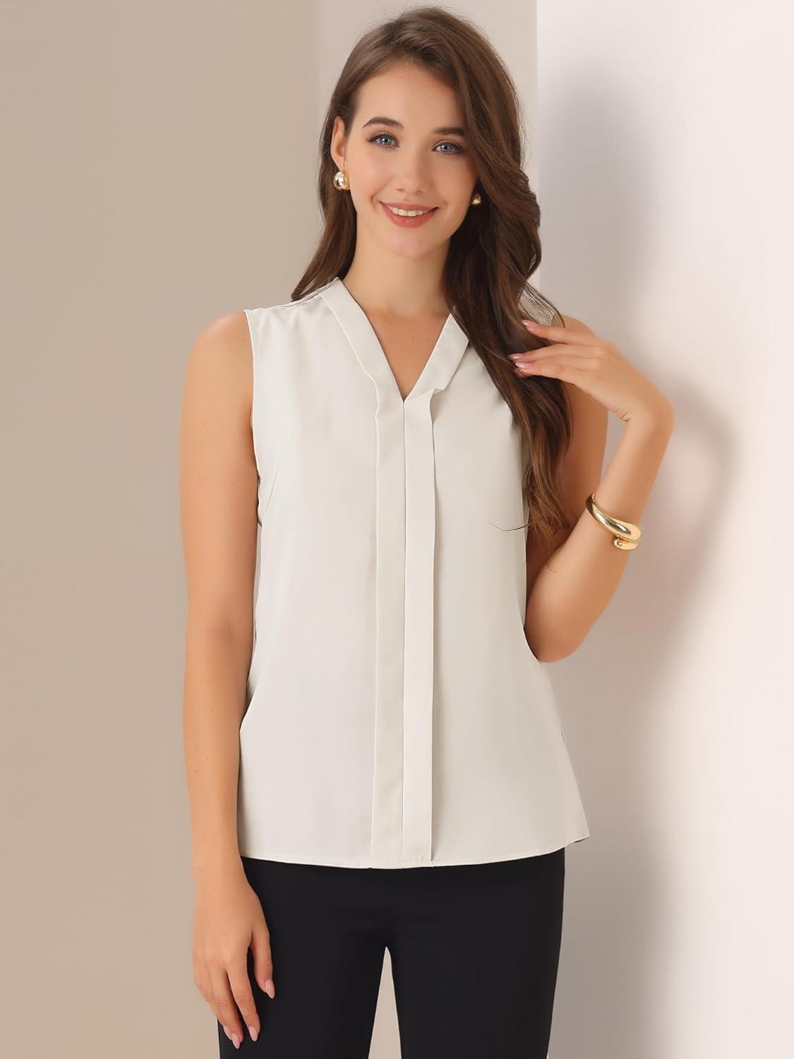 imageAllegra K Womens Work Sleeveless Blouse Business Casual V Neck Tank TopsBeige
