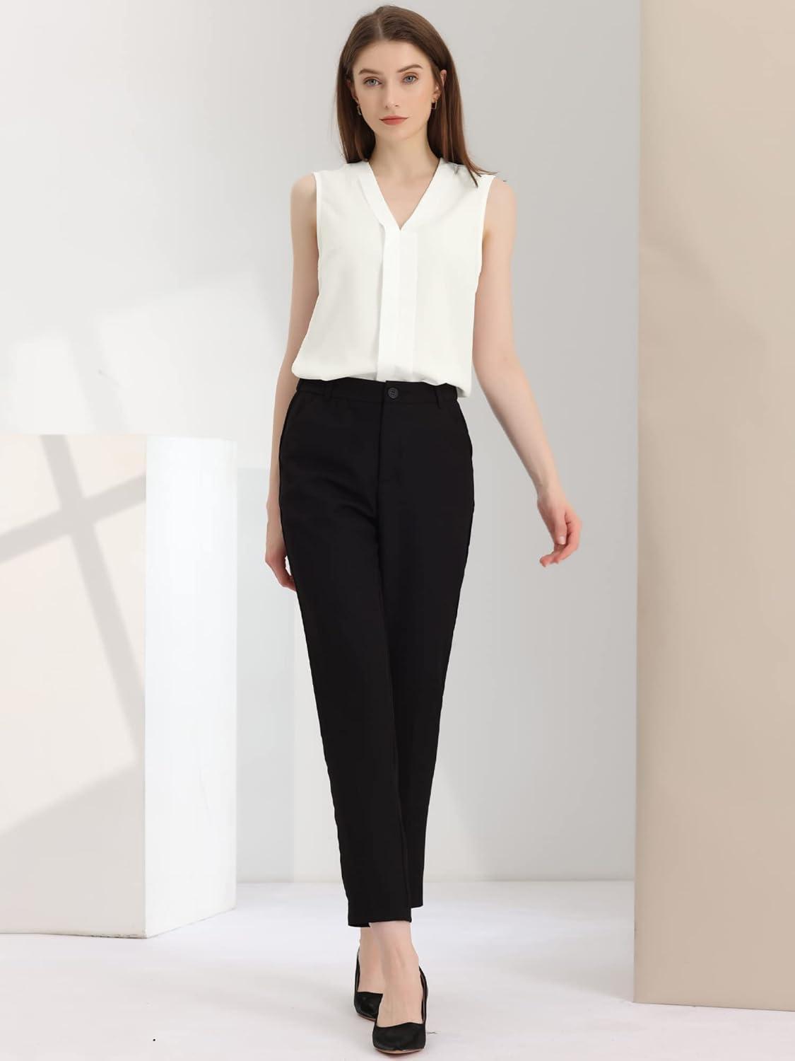 imageAllegra K Womens Work Sleeveless Blouse Business Casual V Neck Tank TopsWhite