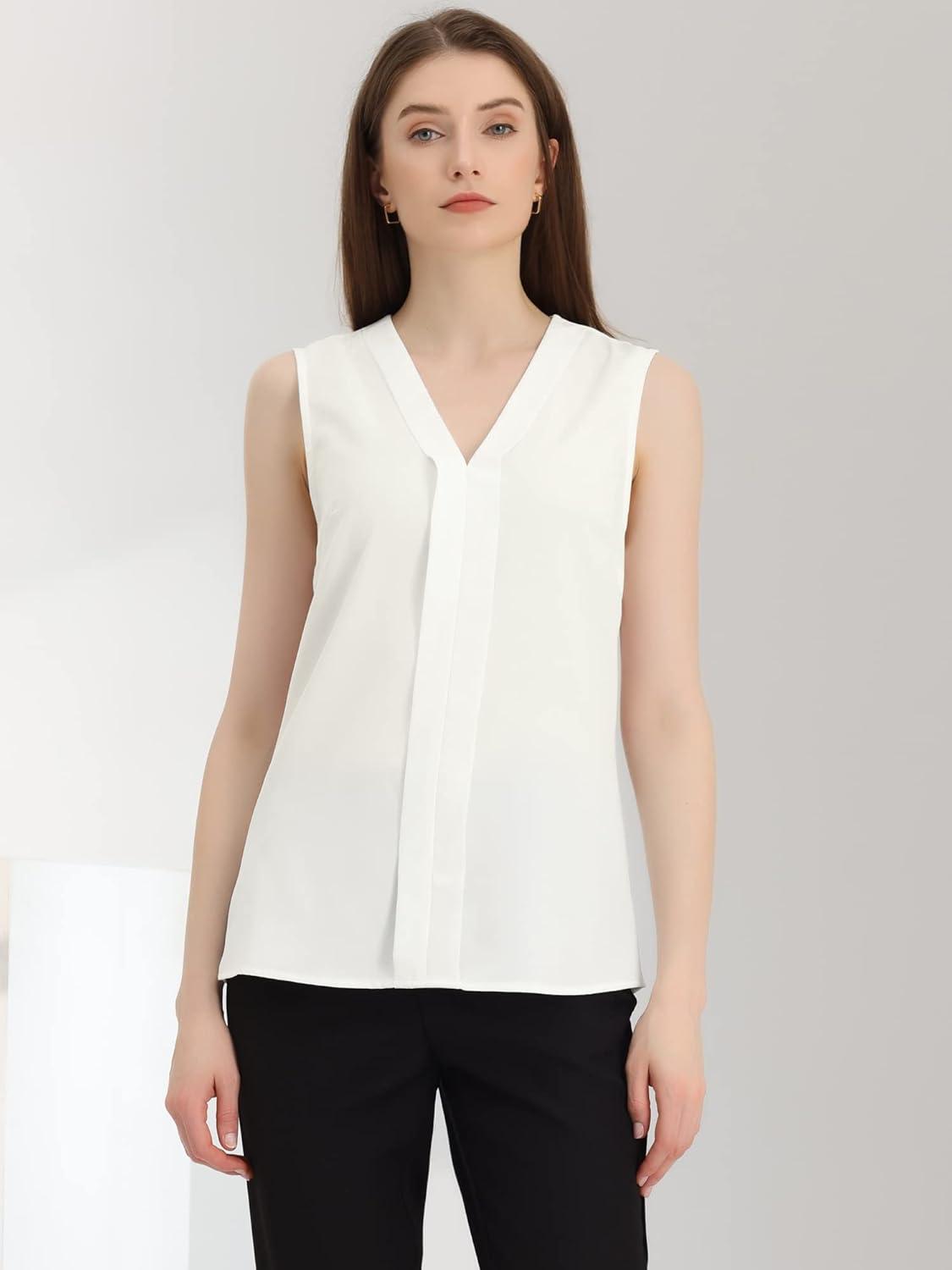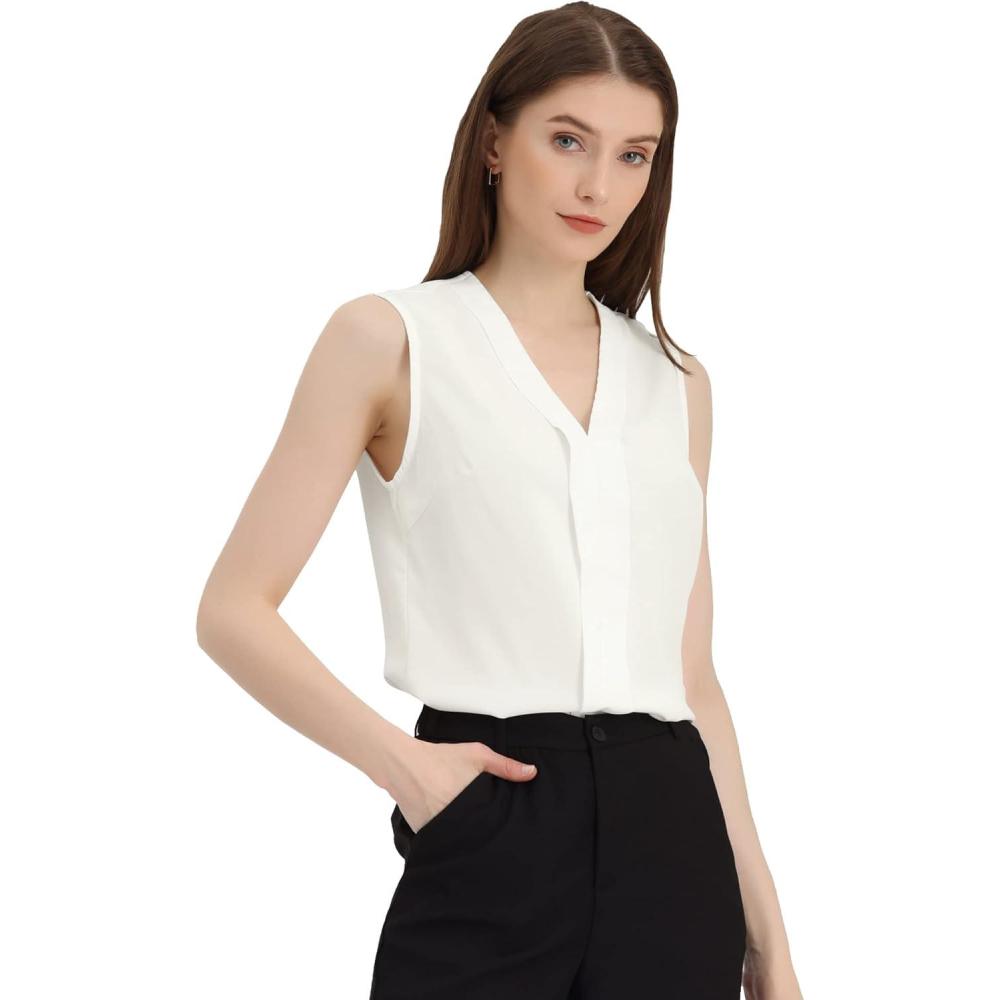 Get the Allegra K Women’s Work Sleeveless Blouse Business Casual V Neck Tank Tops(White) you want at a discounted price during our markdown sale event.