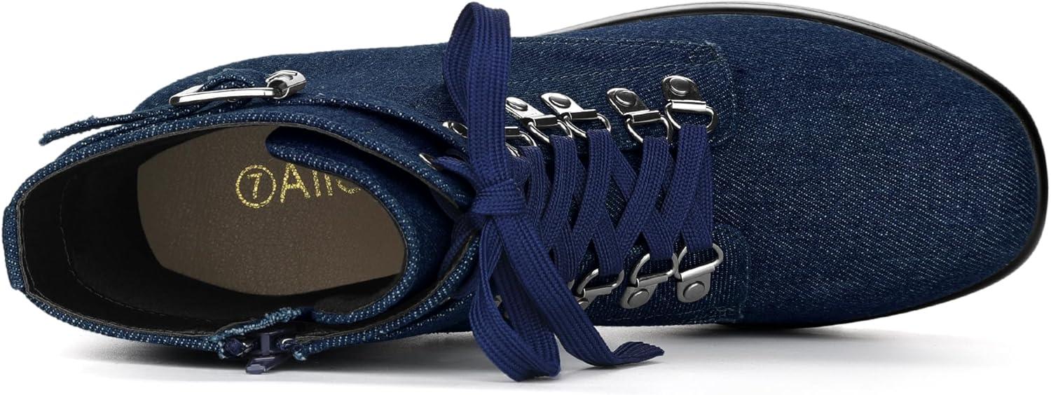 Allegra K Women’s Zip Chunky Heel Platform Ankle Combat Boots(Dark Blue)