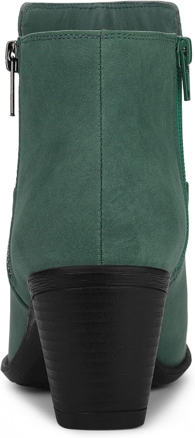 Allegra K Women’s’s Low Chunky Heel Side Zipper Ankle Booties(Green)
