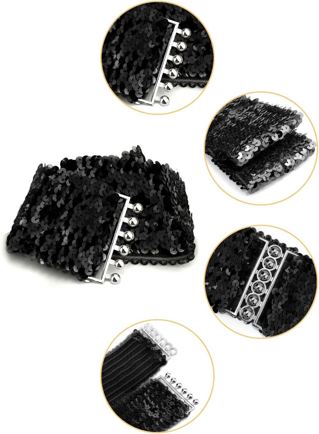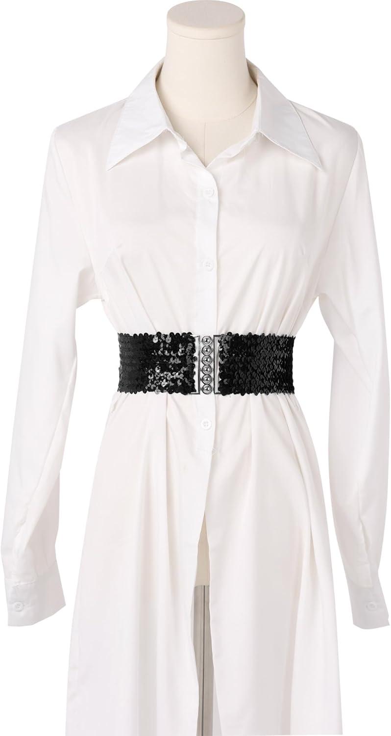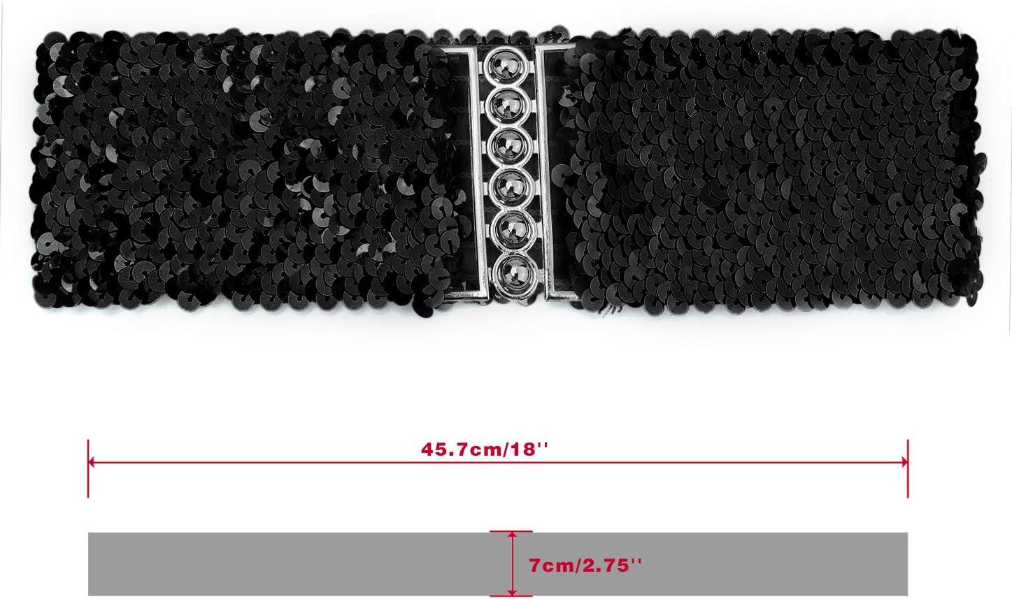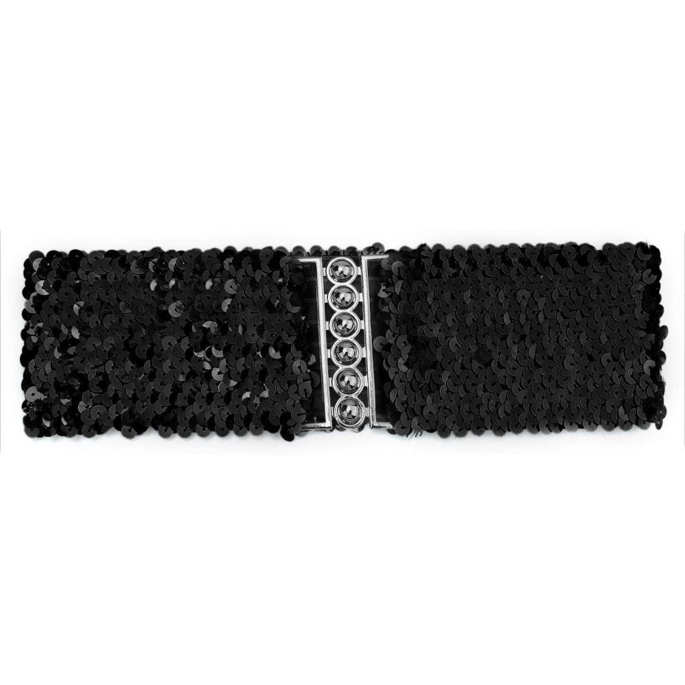 uxcell Ladies Sequins Decor Metal Interlocking Buckles Elastic Waist Belt(Black)