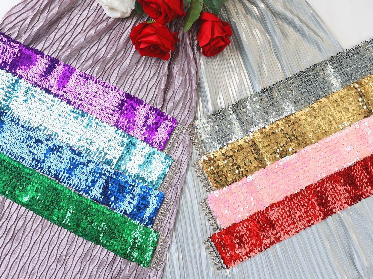 uxcell Ladies Sequins Decor Metal Interlocking Buckles Elastic Waist Belt(Silver)