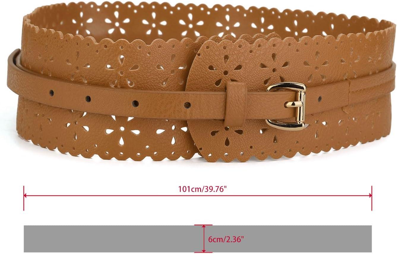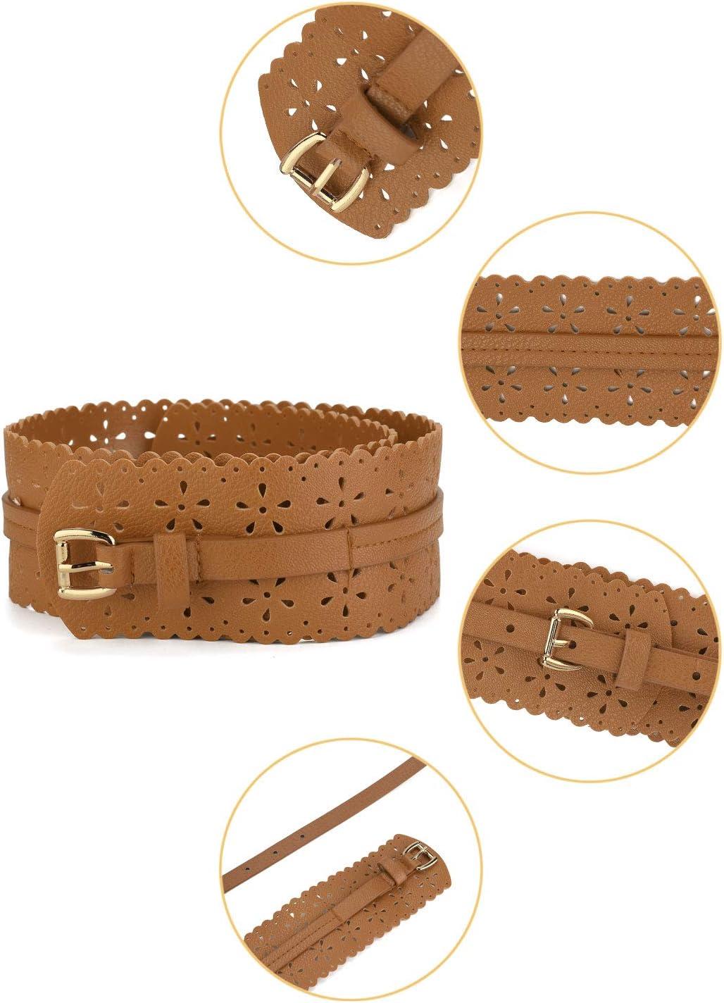 uxcell Vintage Hollow Floral Leather Cinch Waistband Wide Belts with Buckle for Women(Brown)