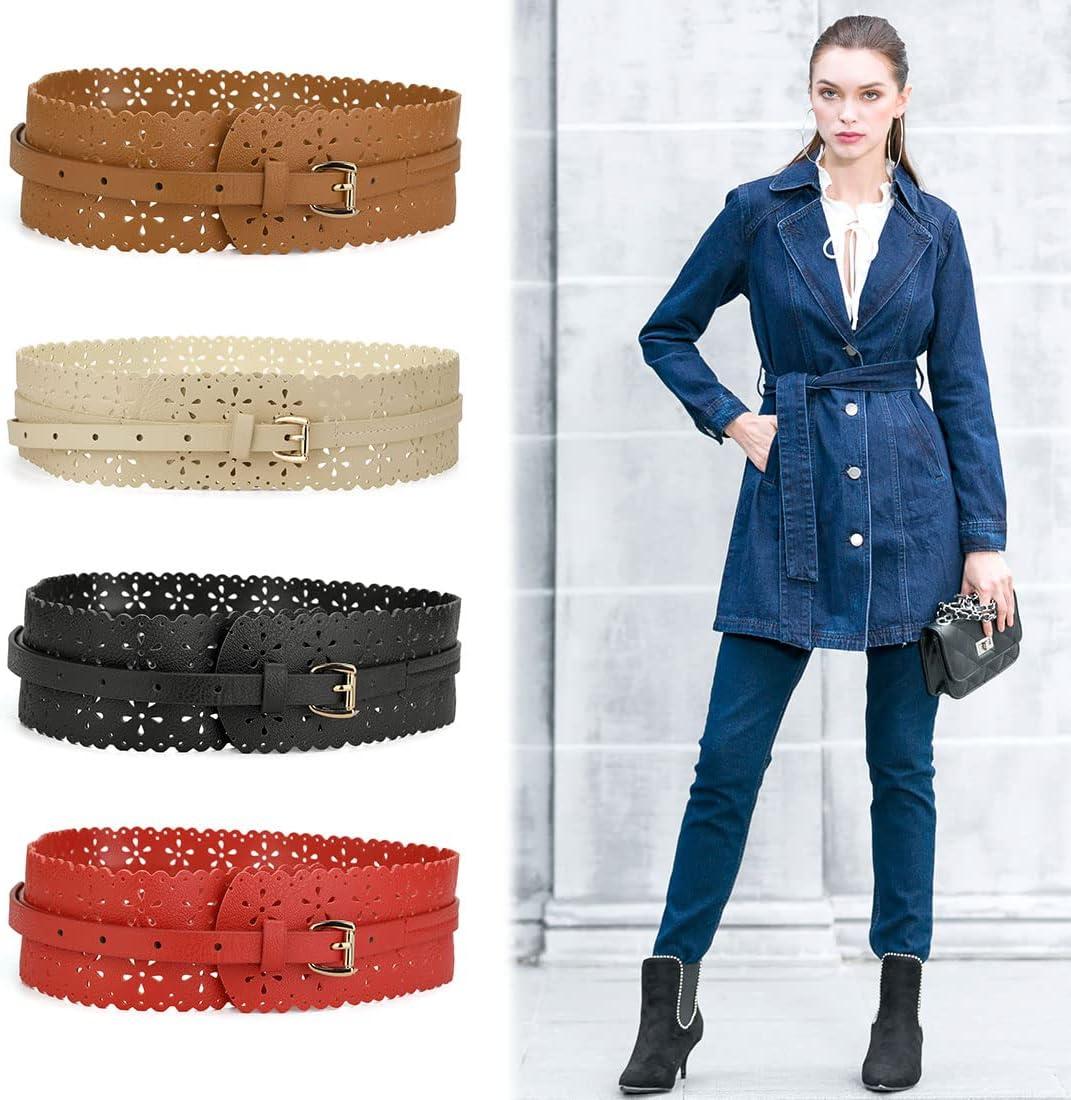 uxcell Vintage Hollow Floral Leather Cinch Waistband Wide Belts with Buckle for Women(Black)
